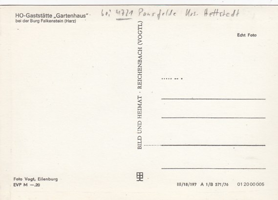 Burg Falkenstein Harz in Sachsen-Anhalt Gaststätte Zum Gartenhaus 1976