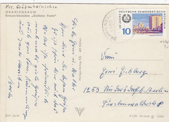 Oranienbaum in Sachsen-Anhalt Gaststätte Goldener Fasan 1970