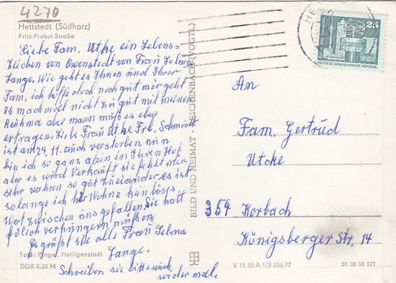 Hettstedt im Südharz in Sachsen-Anhalt Fritz-Probst-Straße 1977