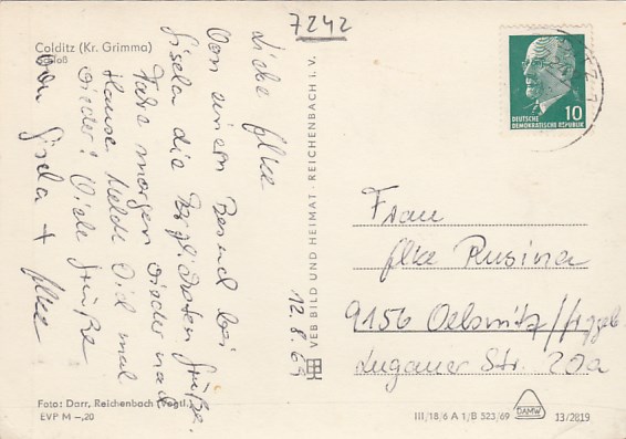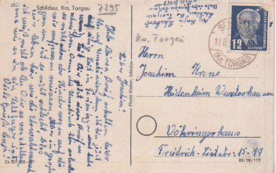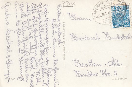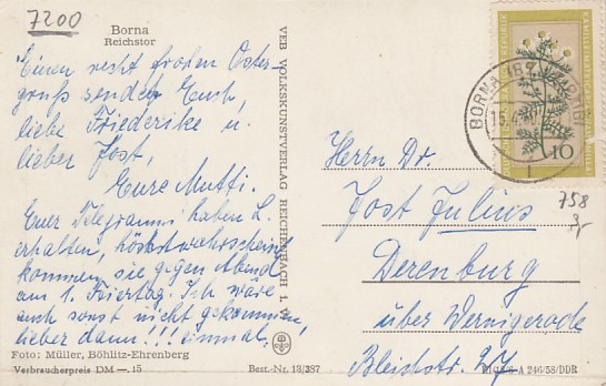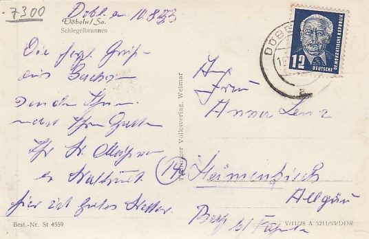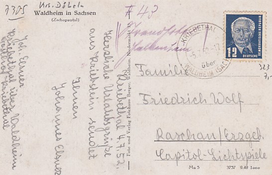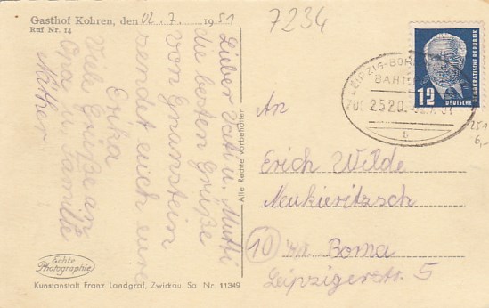 Kohren-Sahlis Sachsen ca 1940 Bahnpoststempel 1951