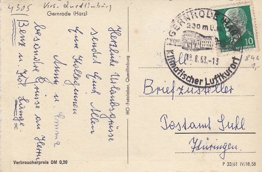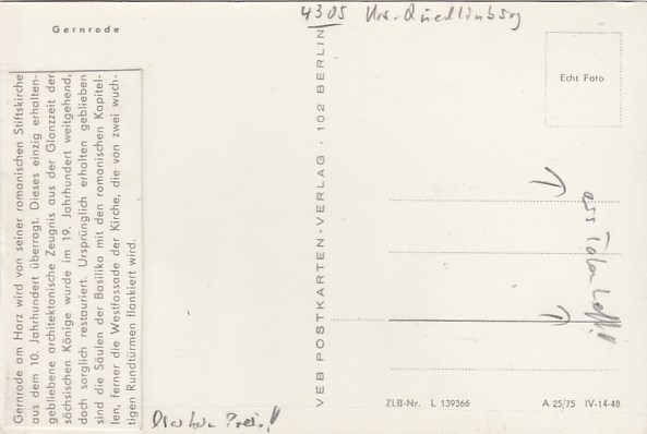 Gernrode im Harz Sachsen-Anhalt Foto Karte ca 1960