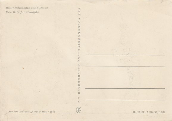 Holzschitzer Bildhauer Handwerk Foto Seifert Hasselfelde Harz in Sachsen-Anhalt 1957