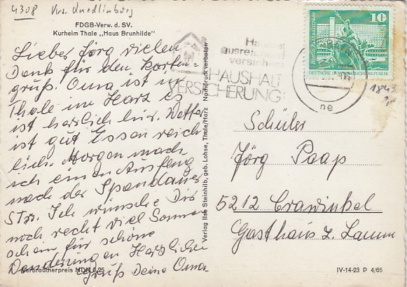 Gernrode im Harz Sachsen-Anhalt Ferienheim Gatersleben 1975