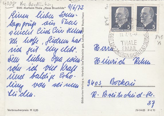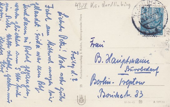 Thale im Harz Sachsen-Anhalt Hubertusstraße 1953