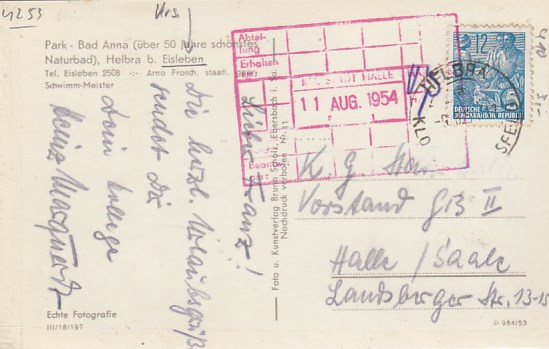 Helbra in Sachsen-Anhalt Parkbad Anna 1953