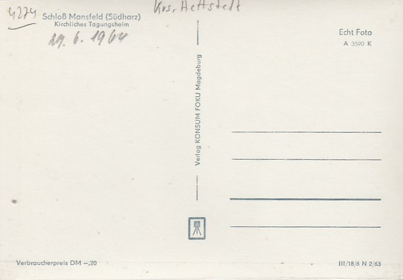 Mansfeld Südharz in Sachsen-Anhalt Schloß 1963