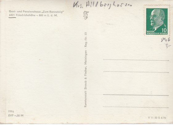Sachsenbrunn OT Friedrichshöhe Thüringen Gasthaus Zum Rennsteig 1968