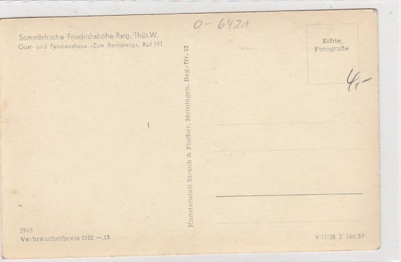 Sachsenbrunn OT Friedrichshöhe Thüringen Gasthaus Zum Rennsteig 1957