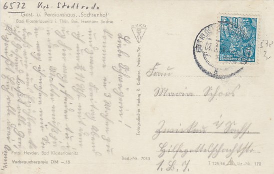 Bad Klosterlausnitz Thüringen Gasthaus Sachsenhof 1956