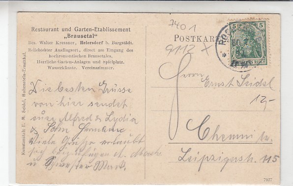 Heiersdorf bei Burgstädt in Sachsen Restaurant Brausetal 1910