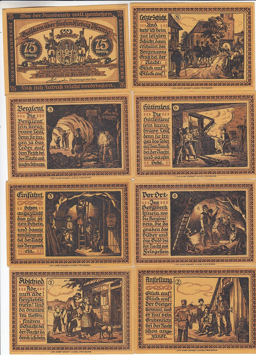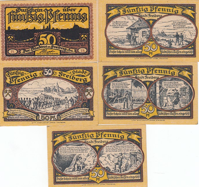 Freiberg in Sachsen 5 Scheine Notgeld mit Bildern von 1921