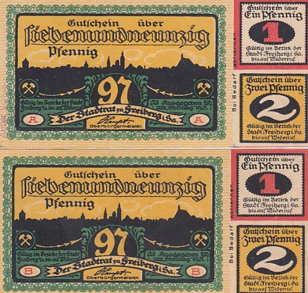 Freiberg in Sachsen 2 Scheine Notgeld mit Bildern von ca 1920