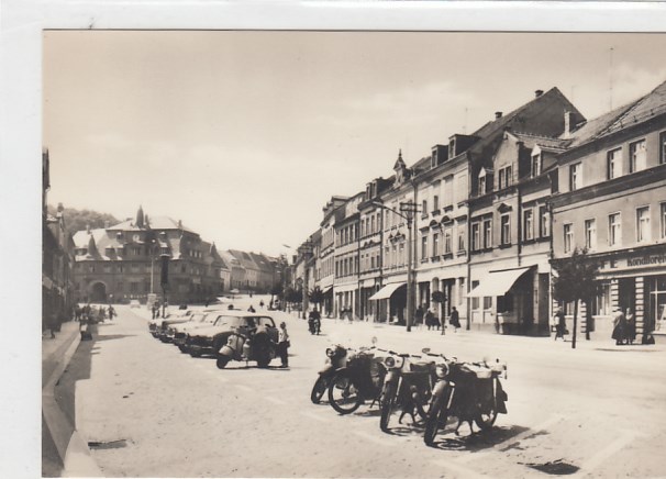 Nossen in Sachsen Markt mit Motorrad 1975