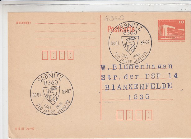 Nossen in Sachsen Postkarte mit Sonderstempel 1985