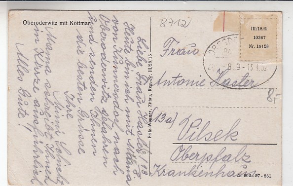 Kottmar bei Eibau in Sachsen Stempel Walddorf 1943