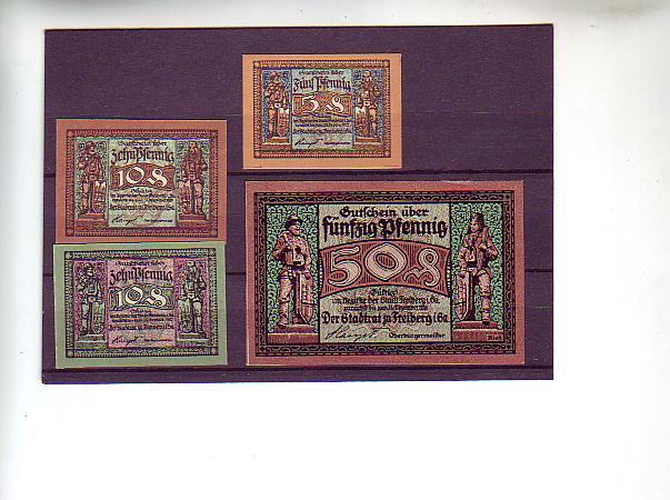 Freiberg in Sachsen 4 Scheine Notgeld