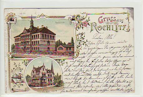 Rochlitz in Sachsen Schule und Villa Wolf Litho 1898