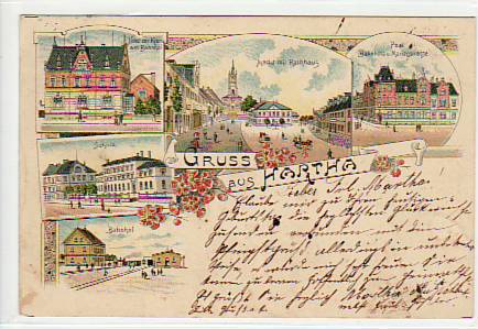 Hartha in Sachsen Litho mit Bahnhof,Postamt,Schule 1901