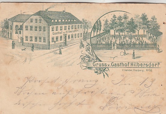 Freiberg in Sachsen Gasthof Hilbersdorf Litho Ansichtskarte 1897