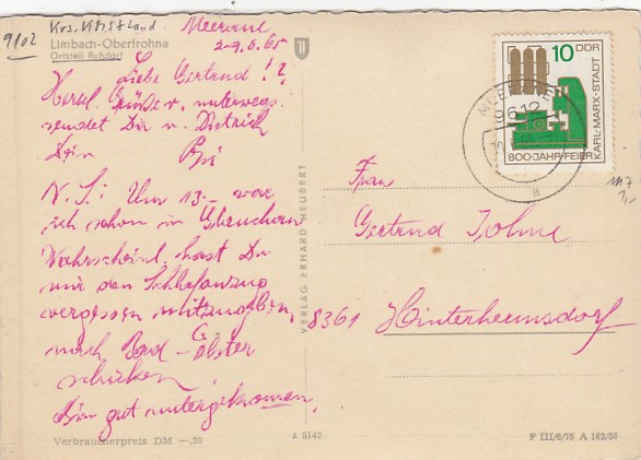 Hartmannsdorf in Sachsen Karl-Marx-Straße 1956