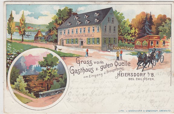 Heiersdorf bei Burgstädt in Sachsen Gasthaus zur guten Quelle Litho Ansichtskarte von 1900