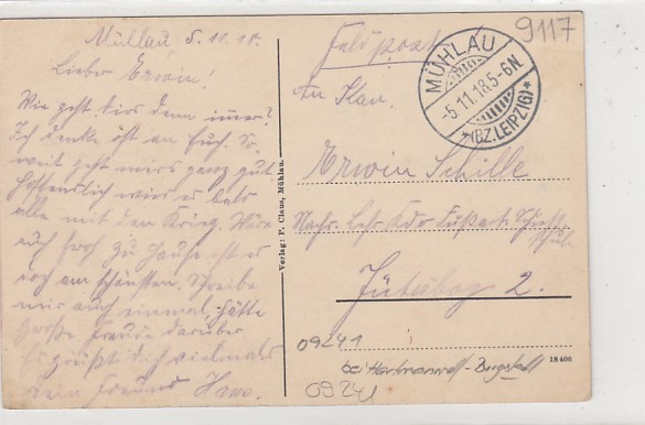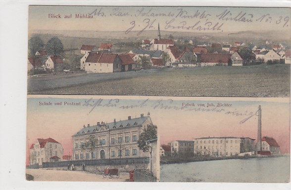 Mühlau in Sachsen bei Hartmannsdorf Burgstädt Schule und Fabrik 1918
