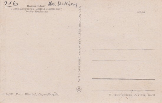 Hormersdorf Erzgebirge in Sachsen Jugendherberge Adolf Hennecke 1955