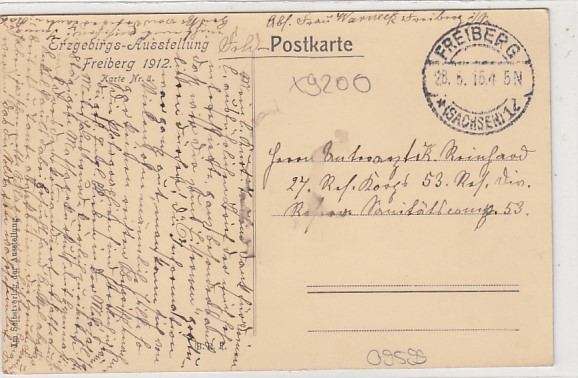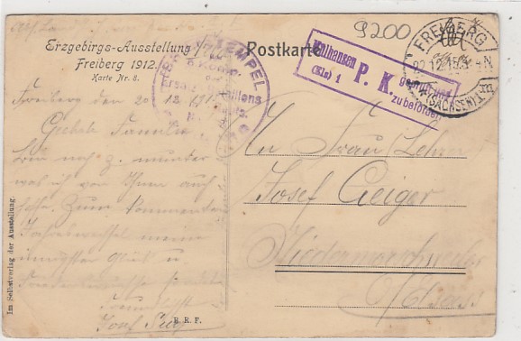 Freiberg in Sachsen Erzgebirge Ausstellung Feldpoststempel Mülhausen 1915