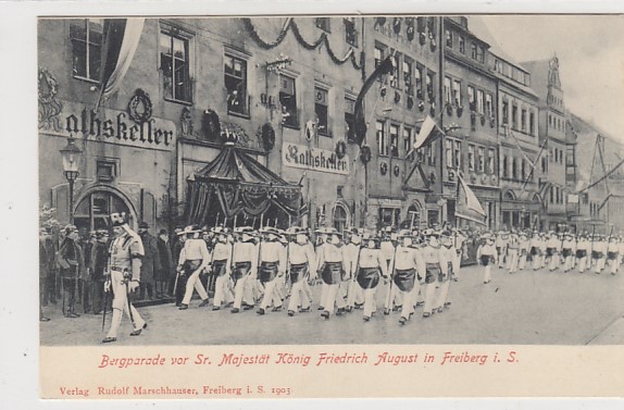 Freiberg in Sachsen Bergparde vor König Friedrich August Adel Monarchie 1905