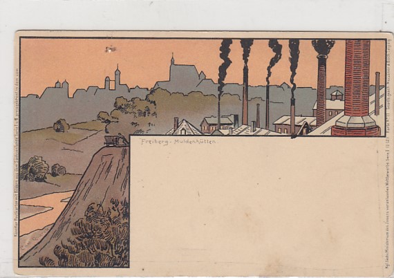 Freiberg in Sachsen Muldenhütten Bergbau Tagebau Künstlerkarte ca 1900