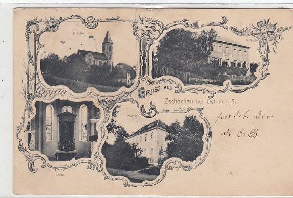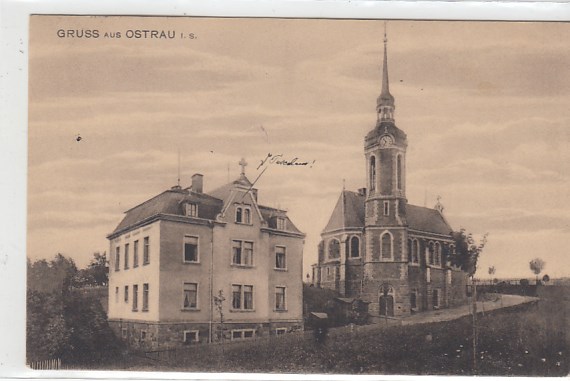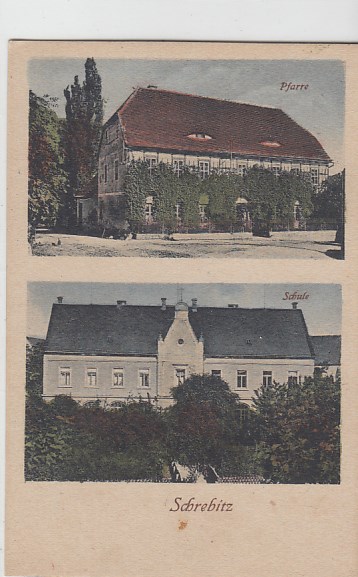 Schrebitz bei Ostrau in Sachsen Pfarre und Schule ca 1920