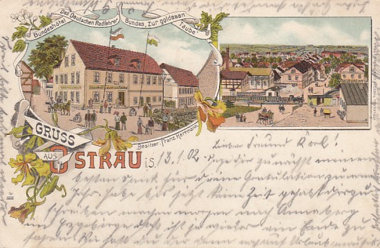 Ostrau in Sachsen Bundeshotel Deutscher Radfahrer Bund Litho Ansichtskarte 1902