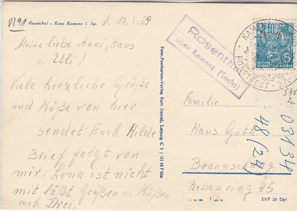 Ralbitz-Rosenthal bei Kamenz Neschwitz in Sachsen Landpoststempel 1959