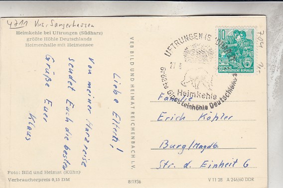 Heimkehle bei Uftrungen bei Kelbra Südharz in Sachsen-Anhalt Höhle 1963
