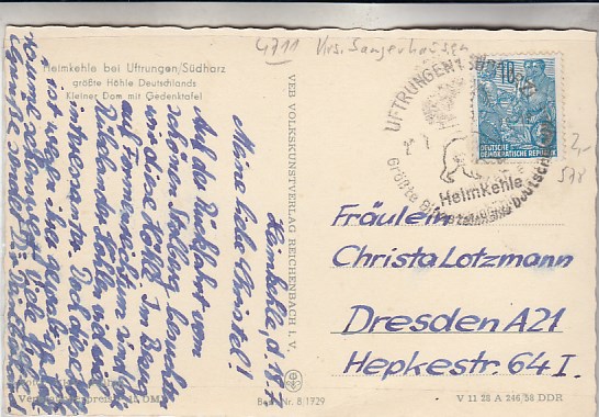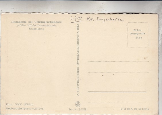 Heimkehle bei Uftrungen bei Kelbra Südharz in Sachsen-Anhalt Höhle 1958