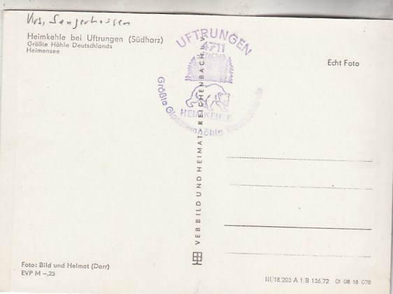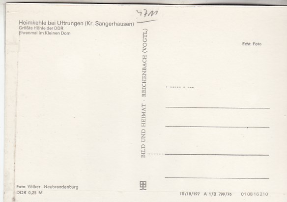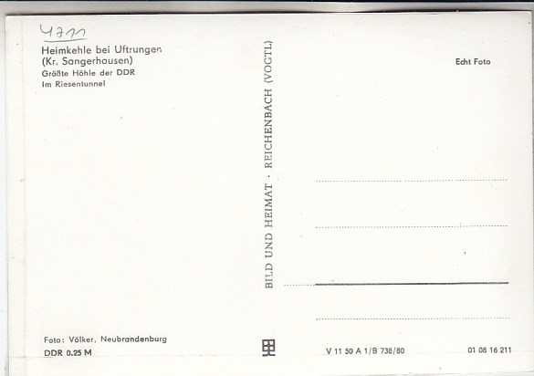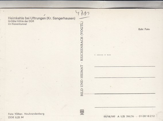 Heimkehle bei Uftrungen bei Kelbra Südharz in Sachsen-Anhalt Höhle 1972