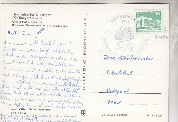 Heimkehle bei Uftrungen bei Kelbra Südharz in Sachsen-Anhalt Höhle 1973