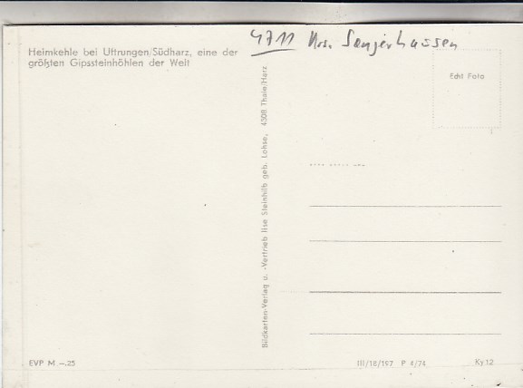 Heimkehle bei Uftrungen bei Kelbra Südharz in Sachsen-Anhalt Höhle 1974