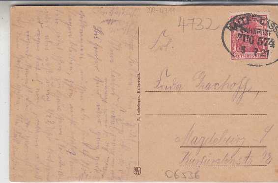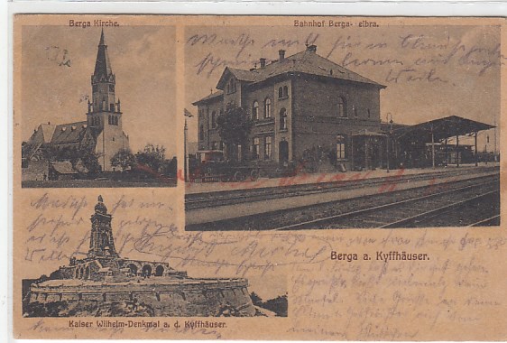 Berga Südharz in Sachsen-Anhalt Bahnhof und Kyffhäuser Bahnpoststempel 1921