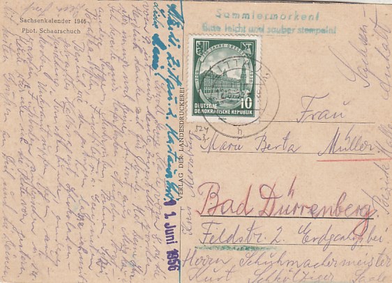 Briefmarken auf AK Sachsen Dreier Anlaß AK DEBRIA 1950 Ausstellung Leipzig