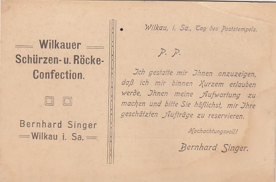 Werbung Reklame Wilkauer Schürzen Röcke Confection ca 1900 Wilkau in Sachsen