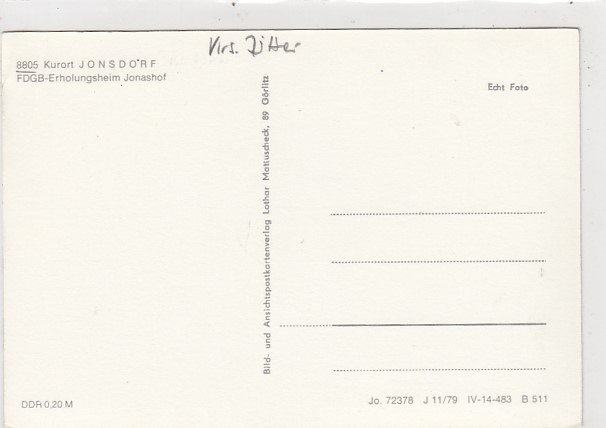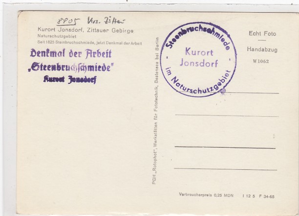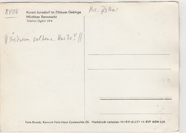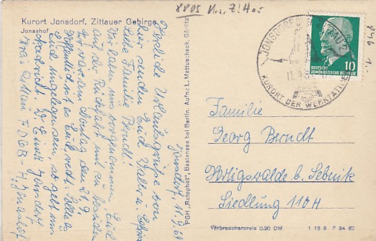 Kurort Jonsdorf in Sachsen Jonashof 1962
