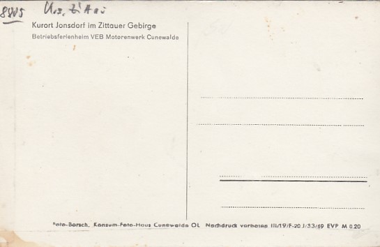 Kurort Jonsdorf in Sachsen Ferienheim VEB Motorenwerk Cunewalde 1969