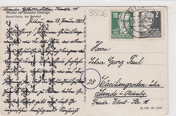 Kurort Jonsdorf in Sachsen Erholngsheim Krankenkasse Südlausitz Sonderstempel Feldpoststempel 19