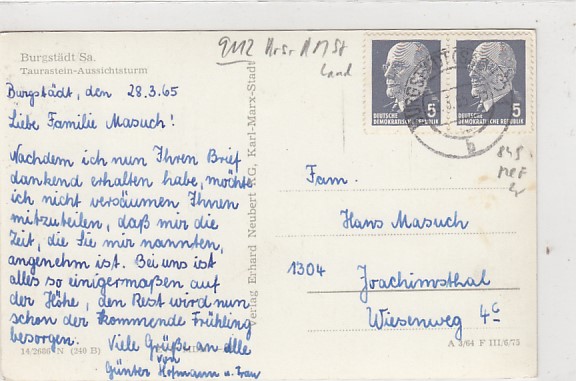 Burgstädt in Sachsen Taurasteinturm Aussichtsturm 1964