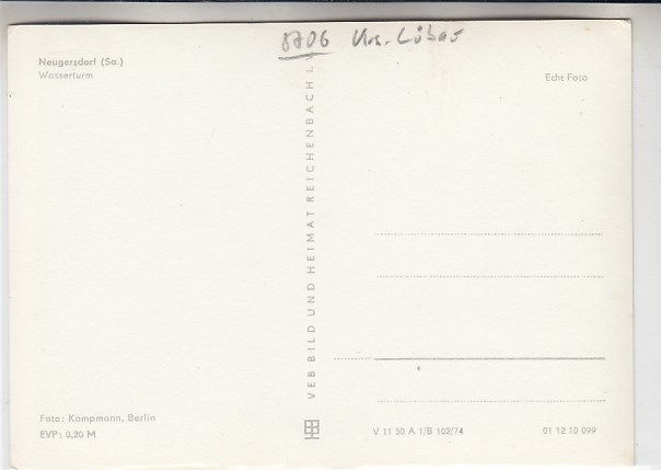 Neugersdorf Sachsen Wasserturm 1974