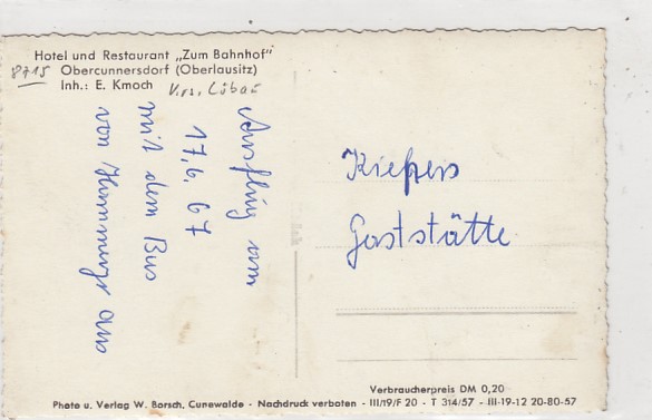 Gemeinde Kottmar Obercunnersdorf Sachsen Restaurant Zum Bahnhof 1957