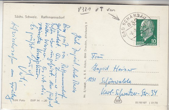 Reinhardtsdorf-Schöna in Sachsen von der Kaiserkrone 1970