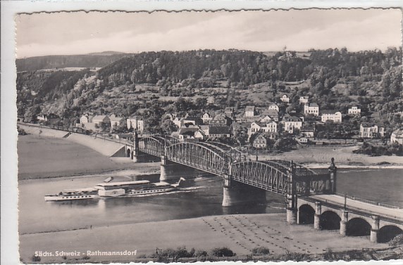 Rathmannsdorf in Sachsen Elbe Brücke und Raddampfer 1961