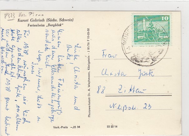 Gemeinde Gohrisch OT Papstdorf in Sachsen Papstein 1975
